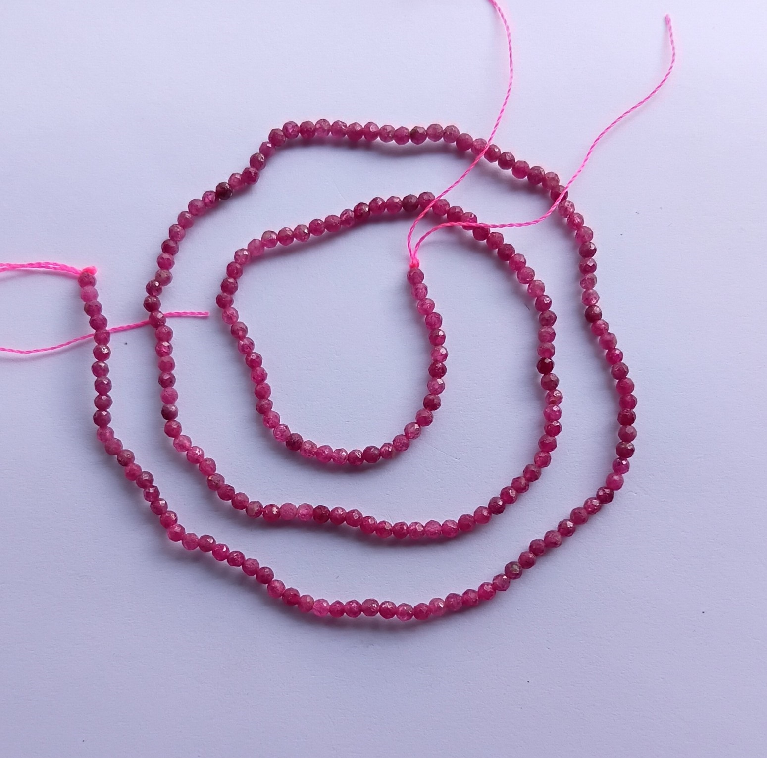 Round Faceted 3mm Pink Tourmaline Beads 36 cms string length